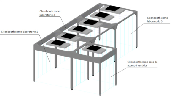 Estos CLEANBOOTHS pueden ser diseñados y enviados al cliente en menos de 4 semanas, y el cliente solo requiere de cierta habilidad técnica (no especializada) para montarlo en un solo día.